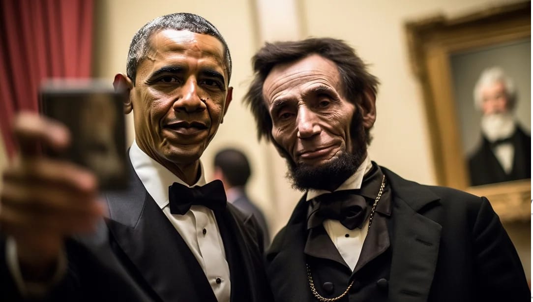 📸 Створені ШІ зображення дня: Обама робить селфі з Лінкольном і Мартіном Лютером Кінгом-молодшим.
