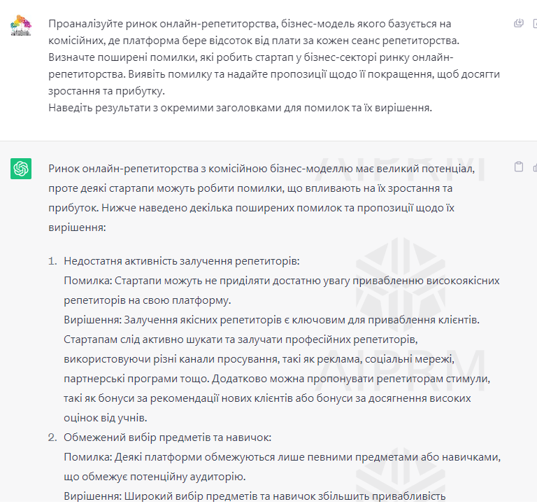 Проаналізуйте ринок онлайн-репетиторства, бізнес-модель якого базується на комісійних, де платформа бере відсоток від плати за кожен сеанс репетиторства. Визначте поширені помилки, які робить стартап у бізнес-секторі ринку онлайн-репетиторства. Виявіть помилку та надайте пропозиції щодо її покращення, щоб досягти зростання та прибутку.